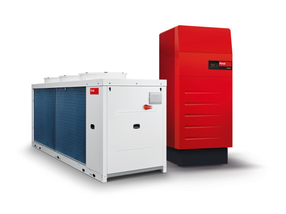 The Hoval hybrid system is the complete, efficient and sustainable solution for heating, cooling and domestic hot water, which requires high power, while integrating a significant share of renewable energy.